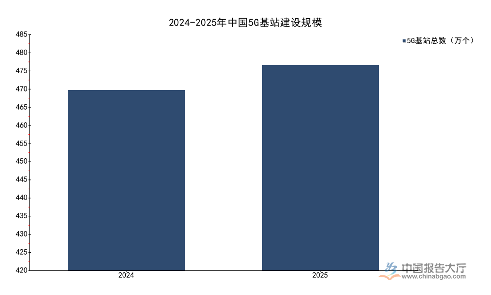 | 统计年份 | 5G基站总数(万个) |