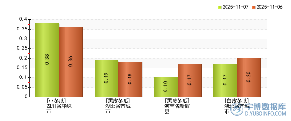 | 四川省邛崃市 | 小冬瓜 | 0.38元/斤 | 0.36元/斤 | 5.56% |
